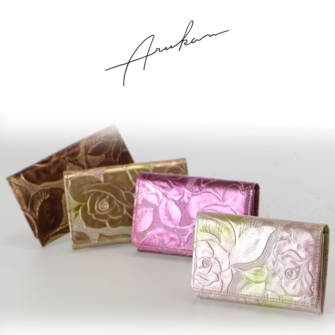 2017年10月11日 Arukan 牛革ローズ柄型押し名刺入れ