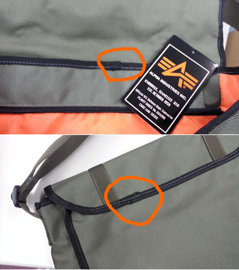 本日撮影、掲載準備を始めた ミリタリー人気ブランド ALPHAの新シリーズ 6型(メッセンジャーバッグ:かぶせタイプ・口折れメッセンジャーバッグ・トートバッグ・ウエストバッグ・ボディバッグ・リュックサック)のうち、写真のかぶせタイプのメッセンジャーバッグの縫製が悪く、販売を断念しました。税抜き3900円と手頃価格で、逆にその価格で無理に仕上げようとするからこのような事態になってしまうのかなとも思いますが、生地も1680Dナイロンと厚手で丈夫、内装カラー等デザインも良いので、販売の断念は残念ですが、写真の様な縫い付けでは、サカエでは販売することはできなと判断しました。中国工場の今後の製造技術のレベルアップで販売開始できることを期待します。他の5型は準備が整い次第、販売を開始しますので今しばらくお待ちくださいませ。