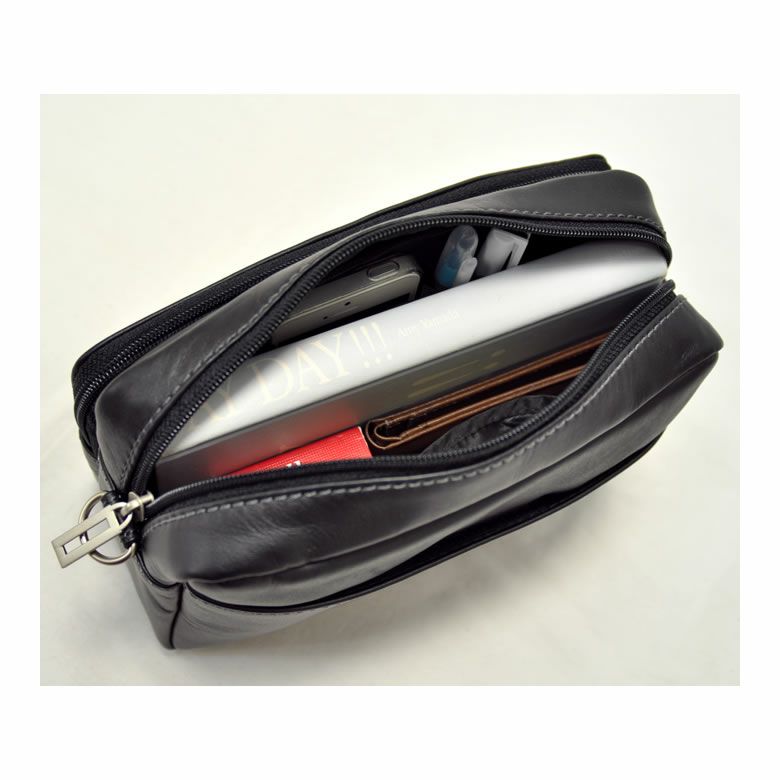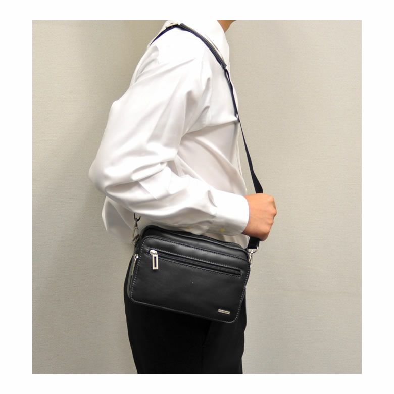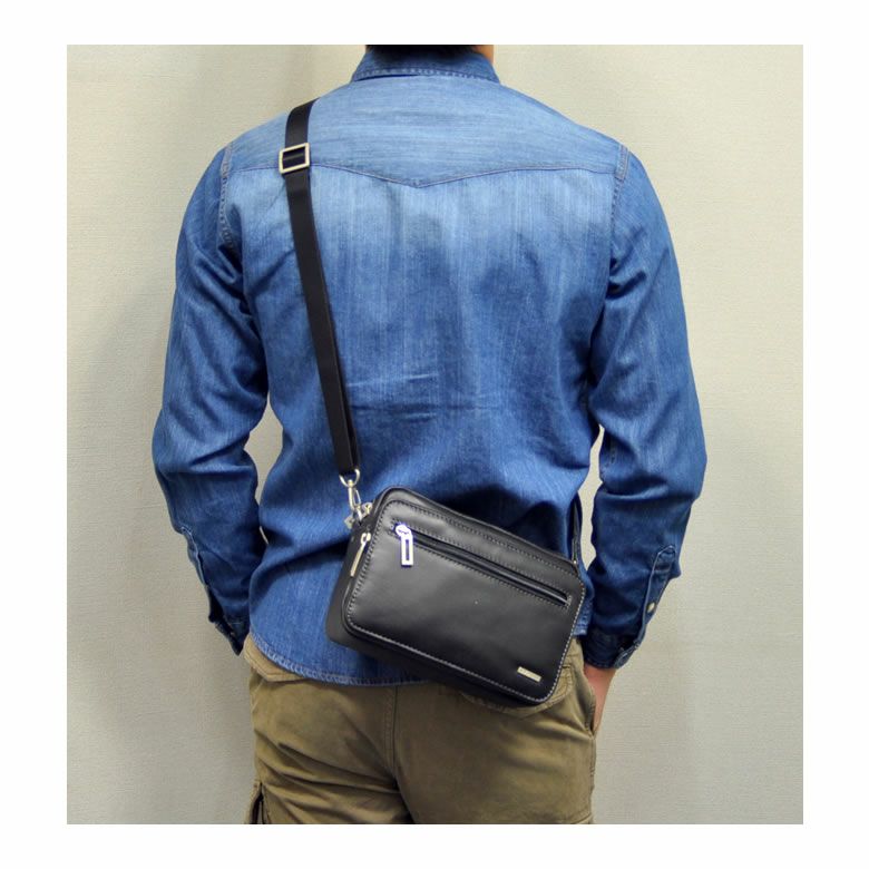 ソフトな本革が魅力のSAXON CLUB(サクソンクラブ)のショルダーバッグ。 付属のショルダーベルトを外せば、セカンドバッグとしても使える便利な2way仕様。 本革製なのに300gという軽さを実現。 小分けしやすいポケットが充実していて、必要な荷物がしっかり収まる絶妙サイズです。 ファスナー仕様のメインルームは適度なマチ幅と深さが使いやすく、用途に応じた収納ポケットが使いやすく配置されています。 消臭・抗菌機能のネームタグがバッグ内部に縫い付けてあり、いつでも気持ちよくお使いいただけます。 【素材】牛革 【サイズ】縦15cm×横22cm×マチ8cm 【重さ】約0.3kg 【色】ブラック |