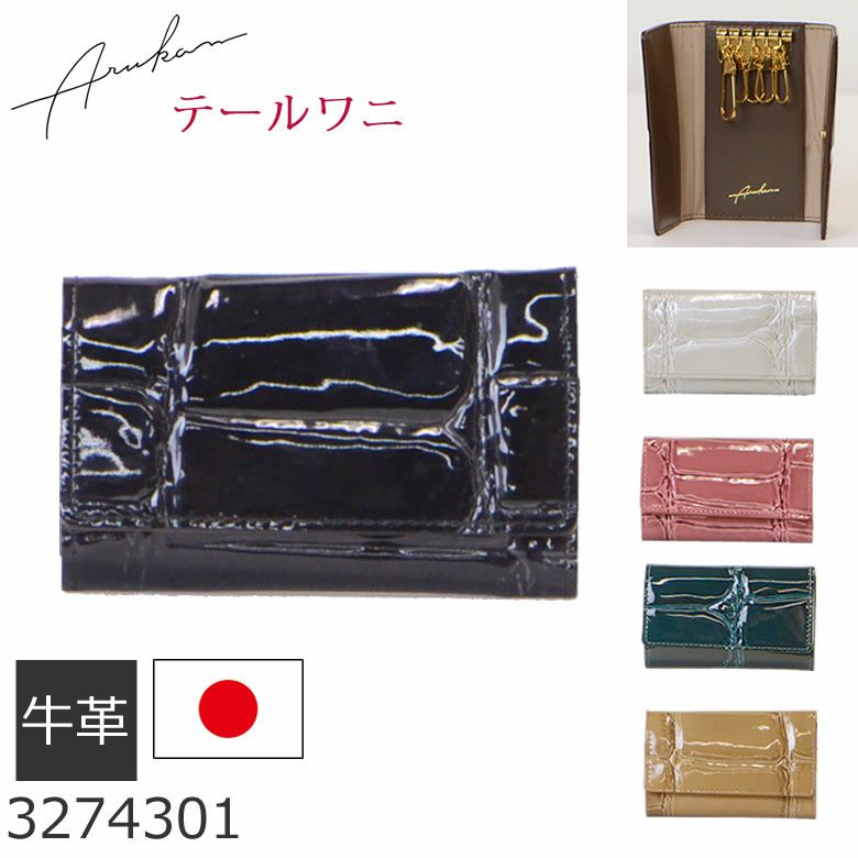 Arukanテールワニ財布シリーズは、色や柄のでかたが一つ一つ違いオンリーワンを持つ楽しみをあじわう。本革に高級感あるワニ尻尾の型押しと艶やかなエナメル加工が魅力