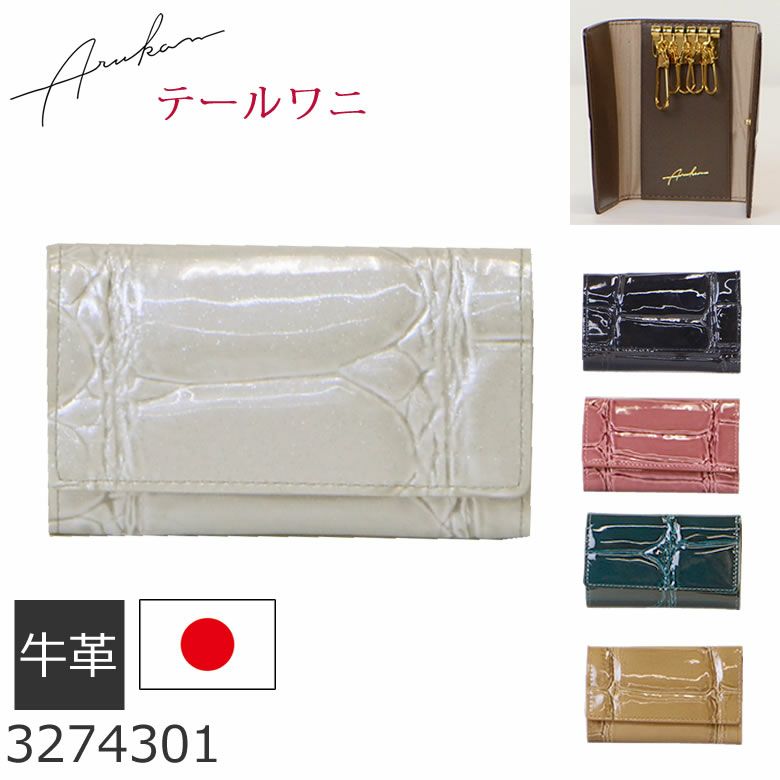 上質な本革素材に高級感あるワニの尻尾の型押しと艶やかなエナメル加工を施した、ARUKAN(アルカン)のテールワニシリーズ。持っているだけでちょっと贅沢な気分に。 コンパクトに持ち歩ける二つ折り財布。 小銭スペースは取り出しやすいBOXタイプ。 スリムながらカードも8枚収納。 札室は仕切り付きで仕分けもしっかり。 確かな品質の日本製です。 【素材】牛革型押しエナメル×牛革 【サイズ】外寸:縦約10cm×横約10.5cm×マチ約2.5cm 【重さ】約80g 【色】ブラック、パール、ベージュ、ピンク、ブラウン、ブルーグリーン |