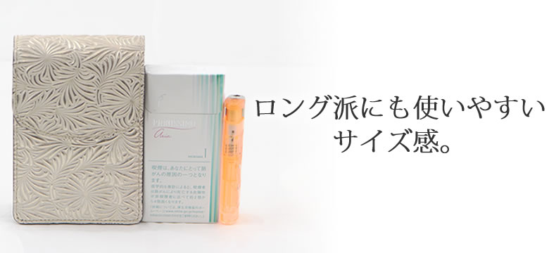 ロングタイプのBOX型シガレットとライターが収納できるサイズが嬉しい。